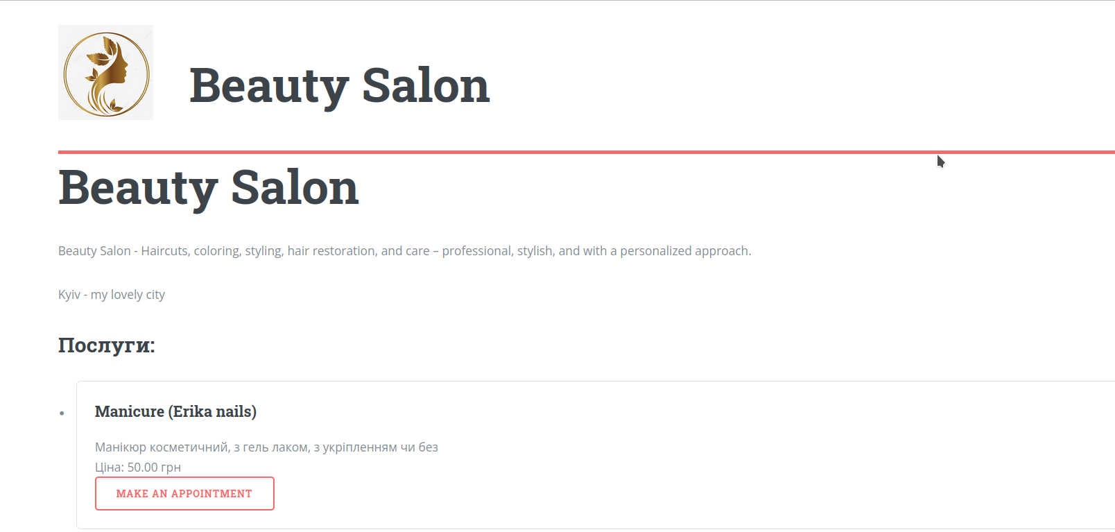 You’ll immediately get your own public page with company information, photos, and a full list of services — plus an option for clients to book online without administrator involvement.