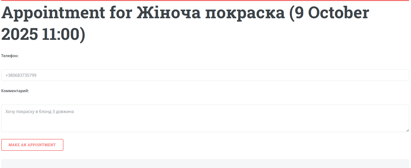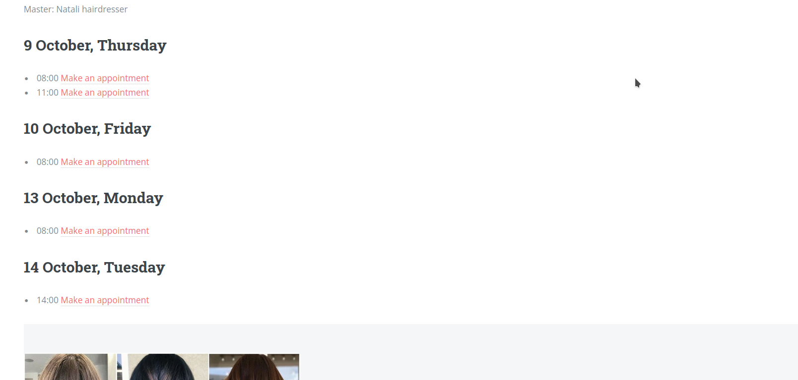 Clients can choose a service, time, and master in just a few clicks. All bookings will automatically appear in your calendar.