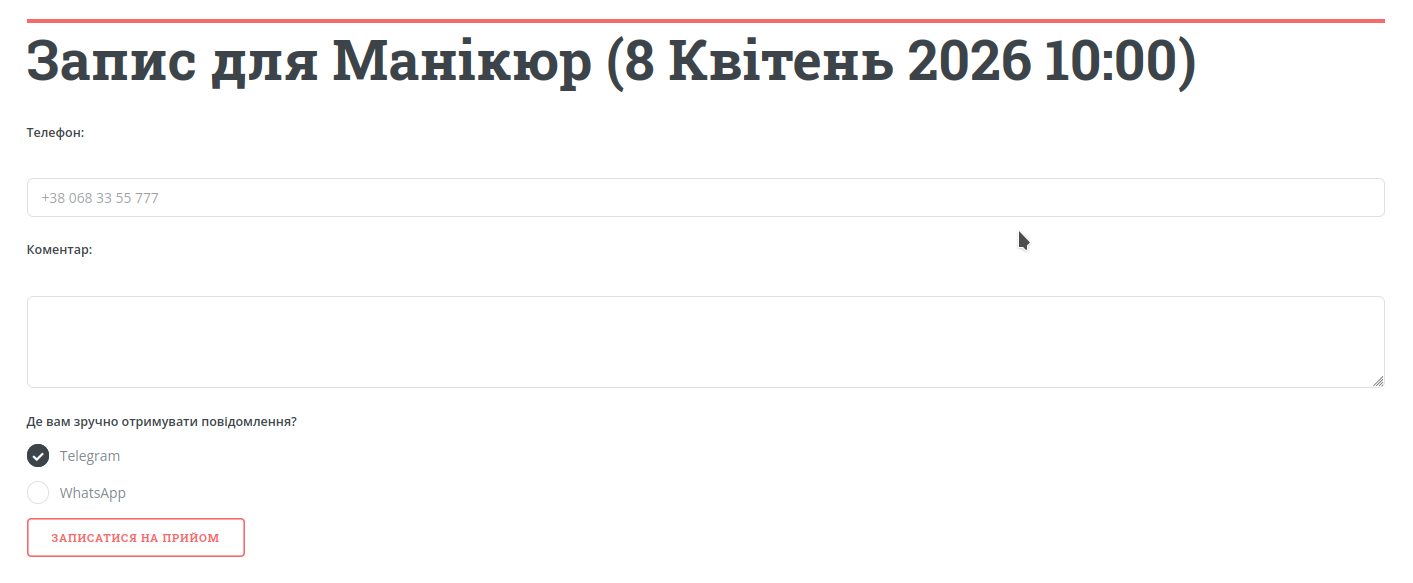 - если включено подтверждение — вы получаете запрос через Telegram-бота или подтверждаете запись вручную в кабинете;
